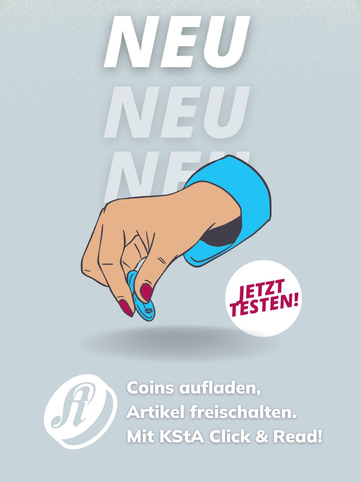 KStA Click & Read ist die Alternative zum klassischen digitalen Abonnement KStA Plus. Nutzende laden dabei Guthaben („Coins“) auf einen virtuellen Geldbeutel („Wallet“). Mit den Coins können dann einzelne zahlungspflichtige Artikel auf ksta.de freigeschaltet werden. Derzeit haben Interessierte die Auswahl zwischen Coins im Wert von 5 bis 15 Euro. Das Modell bietet Nutzenden mehr Flexibilität und Individualität als ein klassisches Abonnement. Mit Click & Read verzichtet die Zeitung auf Micropayments, bei denen pro Artikel bezahlt wird.
