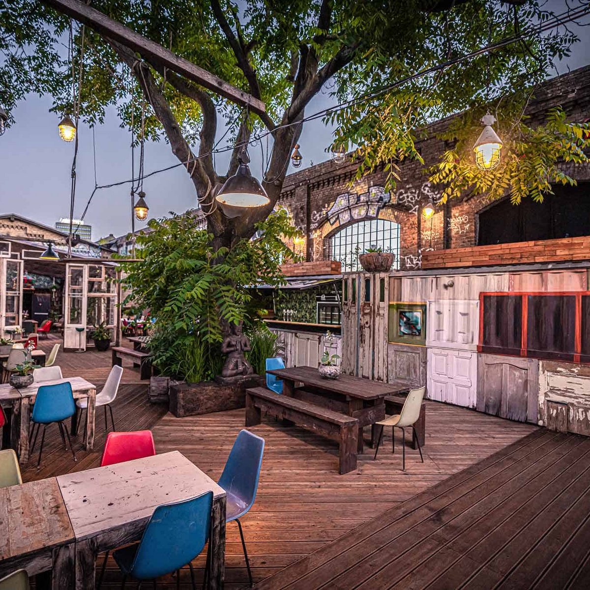 Dieser Abend wird Ihnen auf jeden Fall im Gedächtnis bleiben. Auf dem RAW Gelände ist diese grüne Oase der ideale Ort für entspannte und interessante Gespräche. Für leckeres Essen und kalte Getränke ist gesorgt.